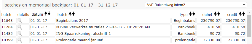 U kunt per VvE een overzicht van alle batches uit het vorige, huidige of volgende boekjaar tonen.